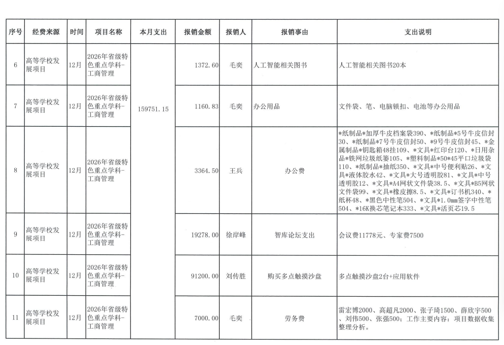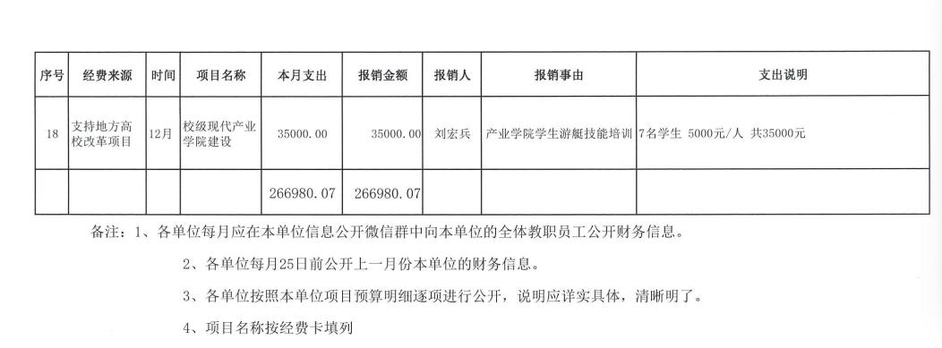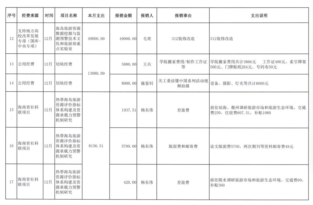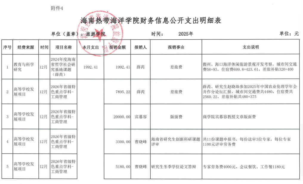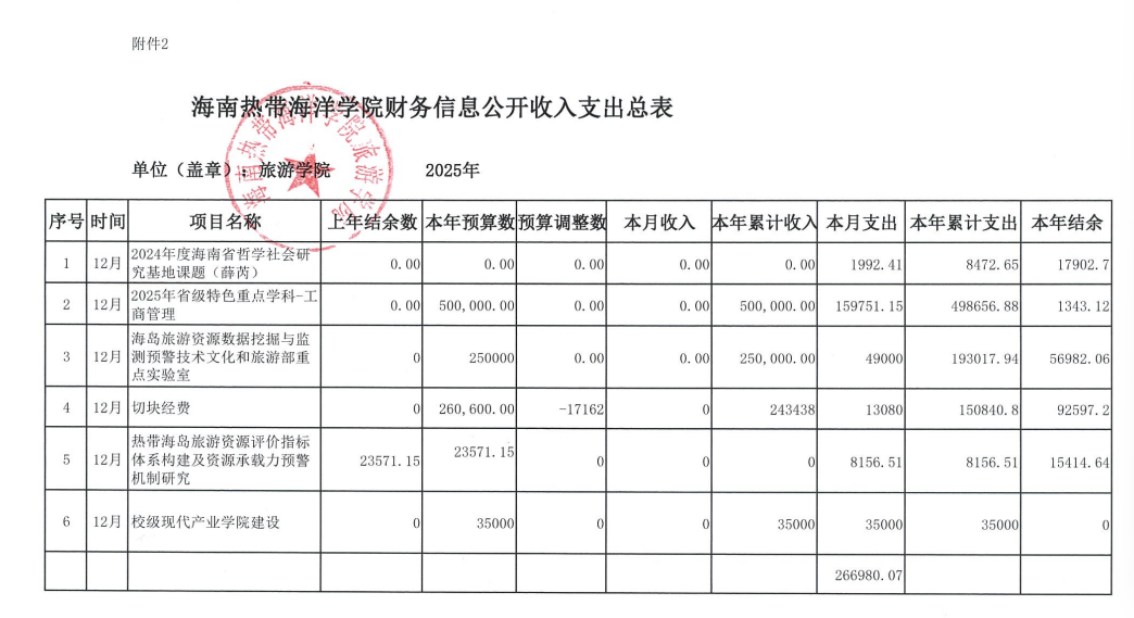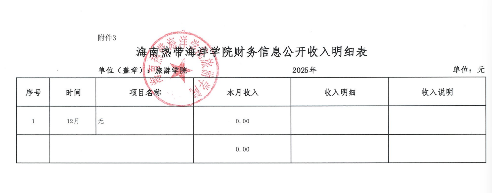 旅游学院2025年12月财务信息公开