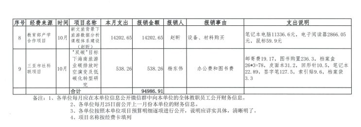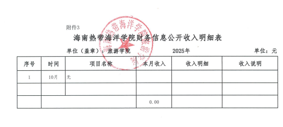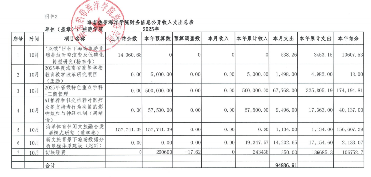 旅游学院2025年10月财务信息公开