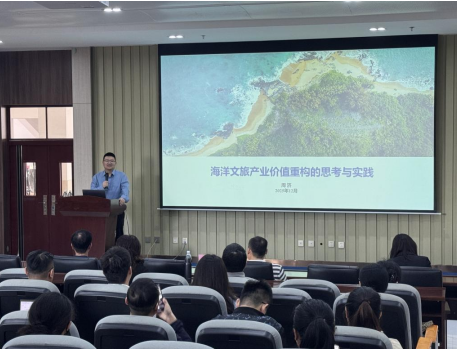 为深化海洋文旅产业研究,助力旅游学院特色发展,赋能海南自贸港建设,12月28日上午,海南热带海洋学院旅游学院在人文楼103教室成功举办“海洋文旅产业价值重构的思考与实践”专题讲座。本次讲座邀请到资本运营与资产管理领域专家、海南高层次领军人才周济担任主讲人。旅游学院党委书记邱清波,艺术学院党总支书记黄丽华,旅游学院副院长宋红娟及旅游学院师生代表共五十余人参加讲座。校党委常委、副校长唐旭主持讲座。